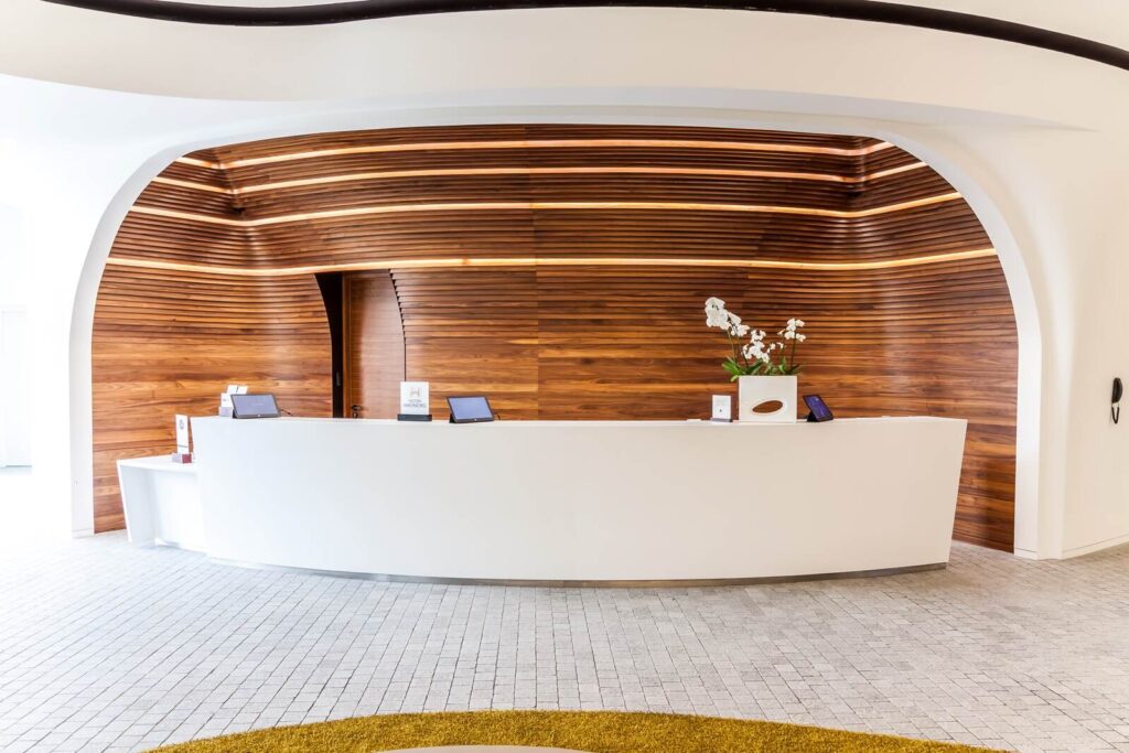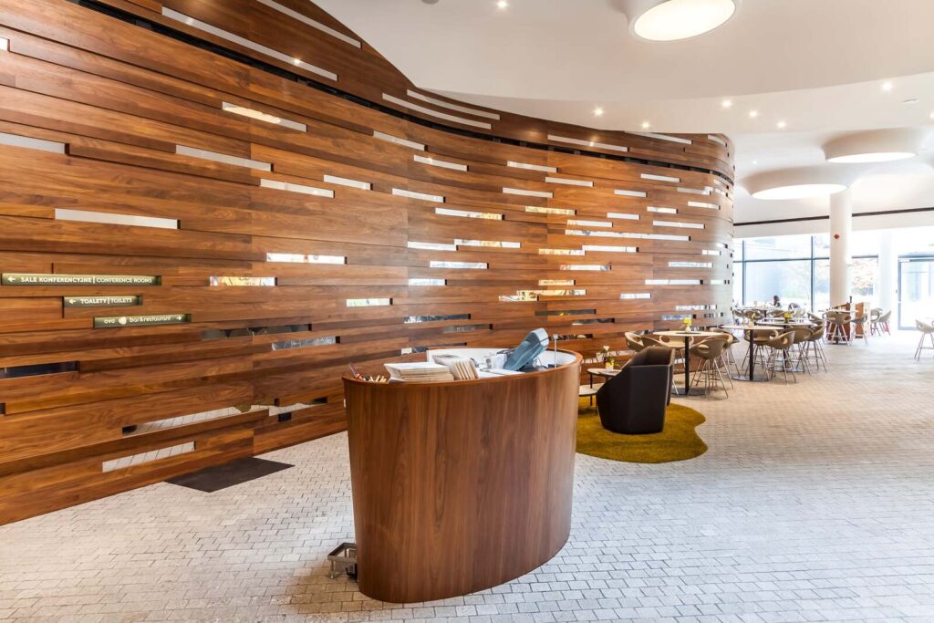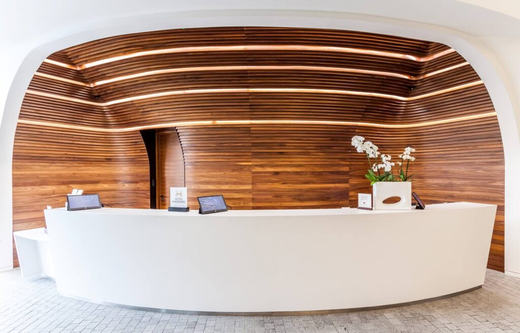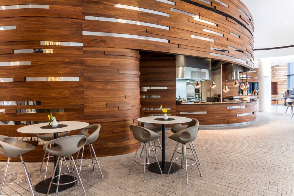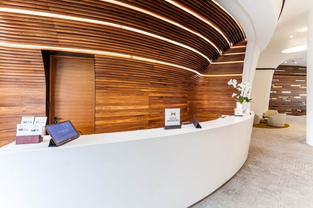 Ovo Hilton Ovo Hilton Jest nietypowym budynkiem w kształcie statku. Wnętrza Hotelu również są niepowtarzalne. Zabudowy ścienne zrobione są z forniru z dodatkami stali nierdzewnej polerowanej. Efekt końcowy zachwyca każdego. Części wspólne Lobby apartamentów Recepcja Restauracja Sala konferencyjna