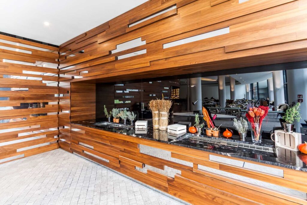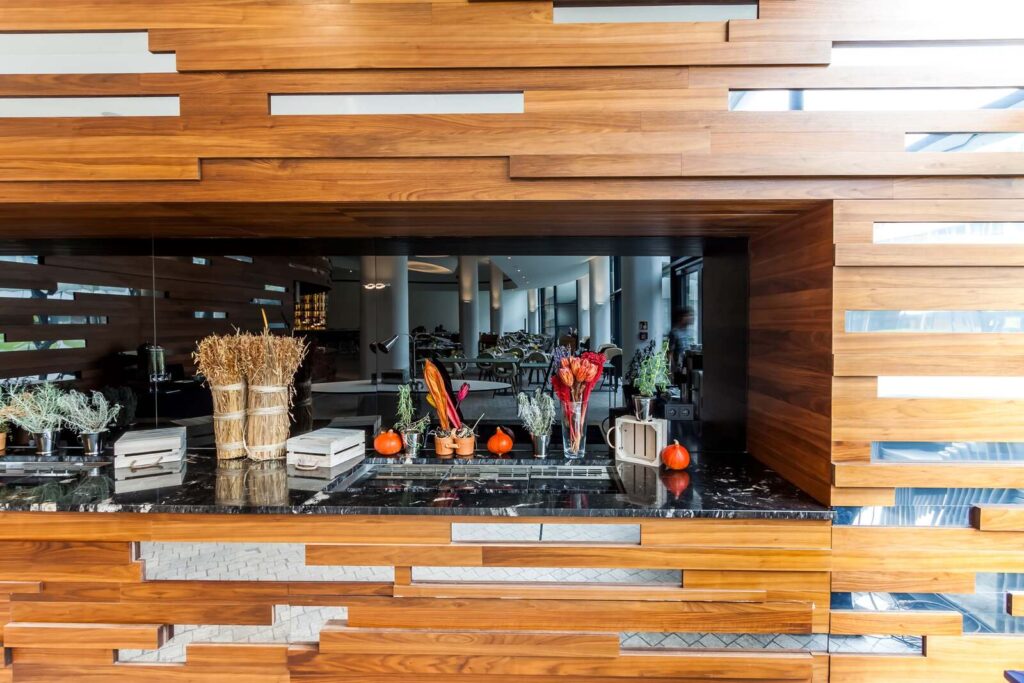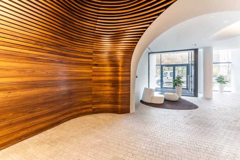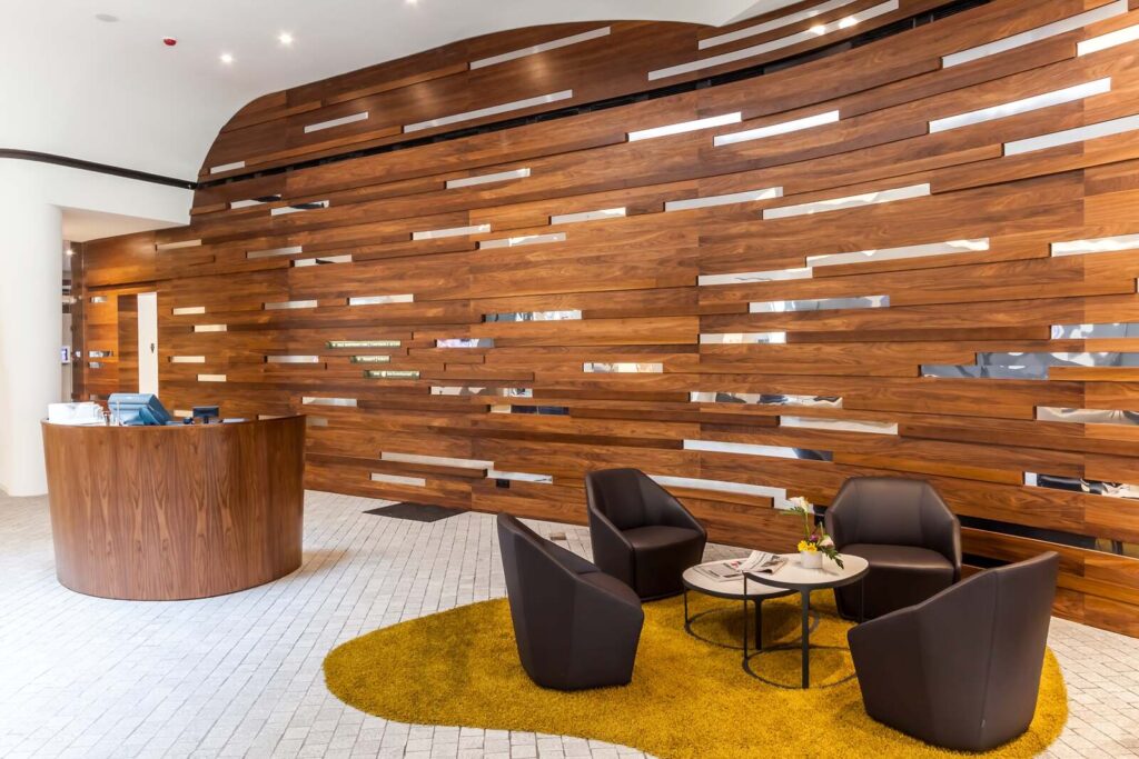 Ovo Hilton Ovo Hilton Jest nietypowym budynkiem w kształcie statku. Wnętrza Hotelu również są niepowtarzalne. Zabudowy ścienne zrobione są z forniru z dodatkami stali nierdzewnej polerowanej. Efekt końcowy zachwyca każdego. Części wspólne Lobby apartamentów Recepcja Restauracja Sala konferencyjna